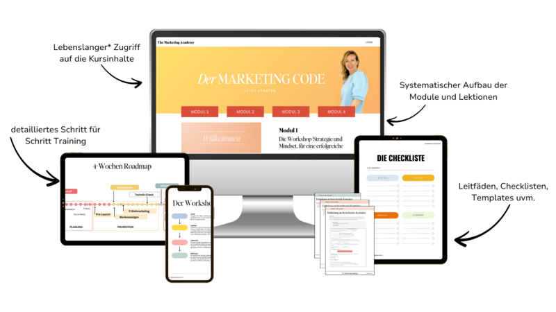 Es ist KEIN weiteres Sammelsurium an Tipps uns auch keine 0815 Schablone. Sondern ein individuell anpassbares System, für dich, deine Nische und dein Angebot. Bewiesen für Coachings, Beratungen und Onlinekurse.